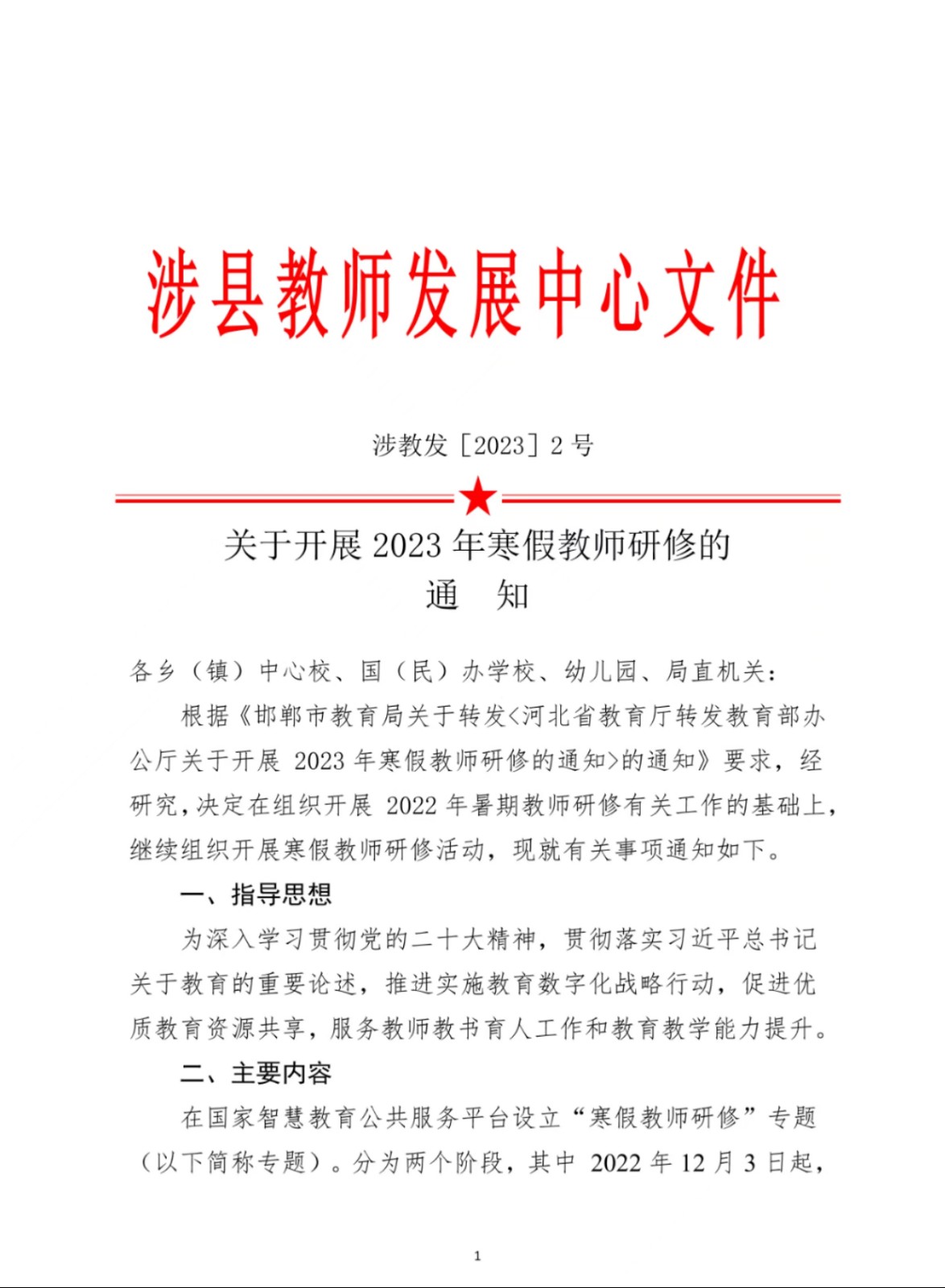 涉县教育体育局 关于做好2022年中小学教师全员远程培训工作的通知
