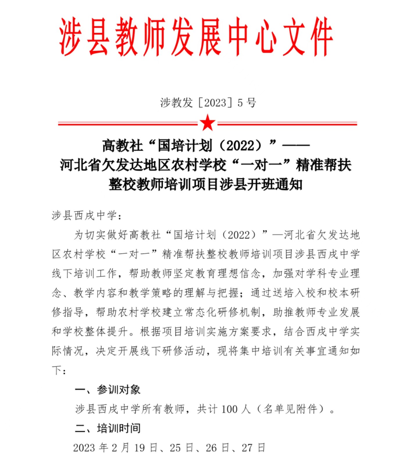 高教社“国培计划(2022)”—河北省 区域教师校本研修共同体骨干教师培训项目涉县开班通知