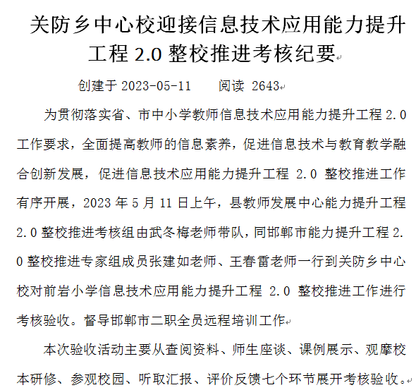 关防乡中心校迎接信息技术应用能力提升工程2.0整校推进考核纪要