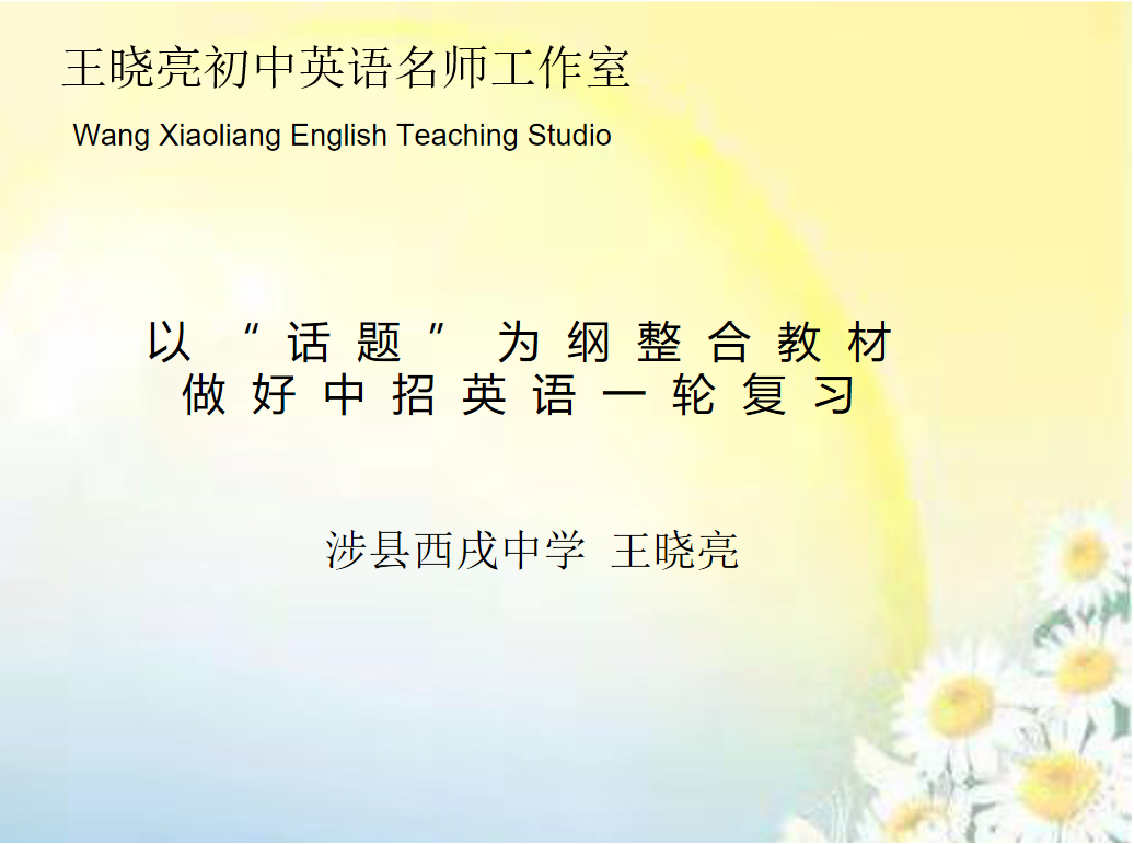 以“话题”为纲整合教材 做好中招英语一轮复习王晓亮初中英语名师工作室