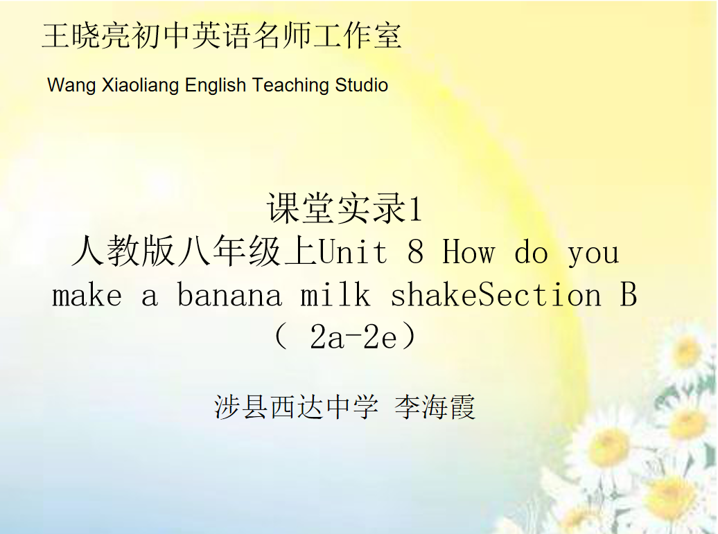 课堂实录1 人教版八年级上Unit 8 How do you make a banana milk王晓亮初中英语名师工作室