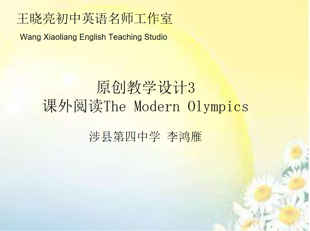 原创教学设计3课外阅读 The Modern Olympics王晓亮初中英语名师工作室