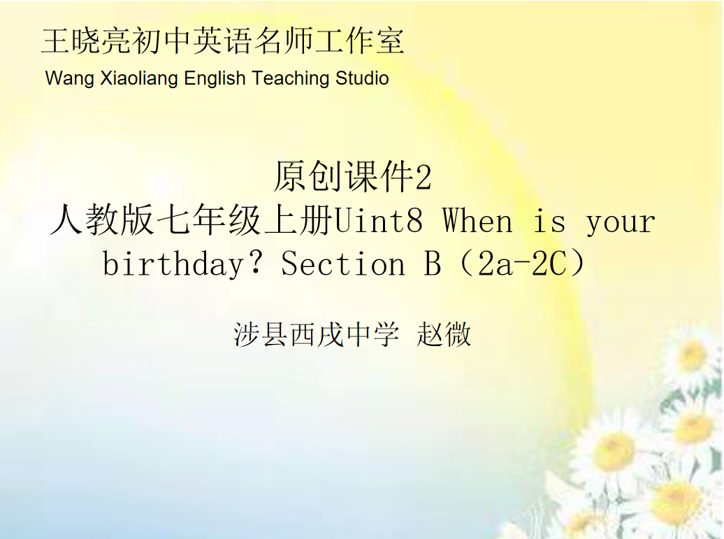 原创课件2人教版七年级上册unit8 When is your birthdaySection B(王晓亮初中英语名师工作室